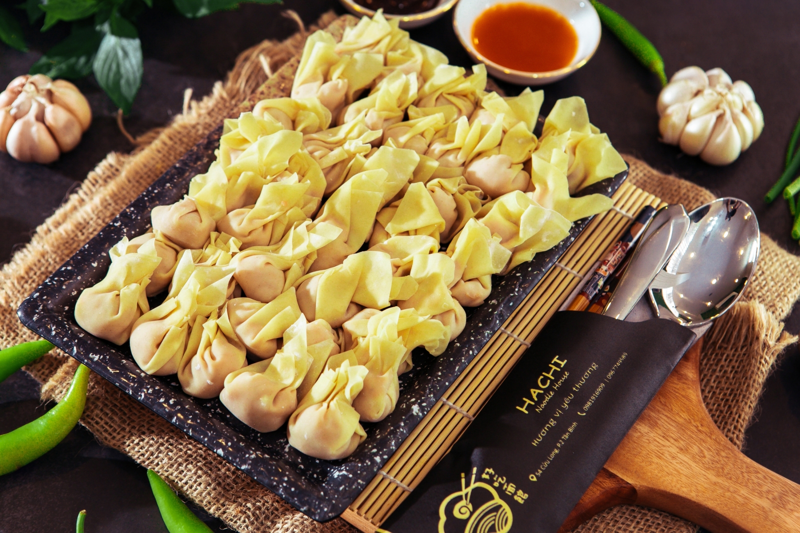 Quán Mì chuyên phục vụ Mì Hoành Thánh Tôm Sú – Cua Bể, cơm Gà Hải Nam và nhiều món đặc sản gốc người Hoa. Thêm thắt hương vị cá tính riêng biệt nhằm thích nghi với khách hàng khắp nơi trong và ngoài nước.