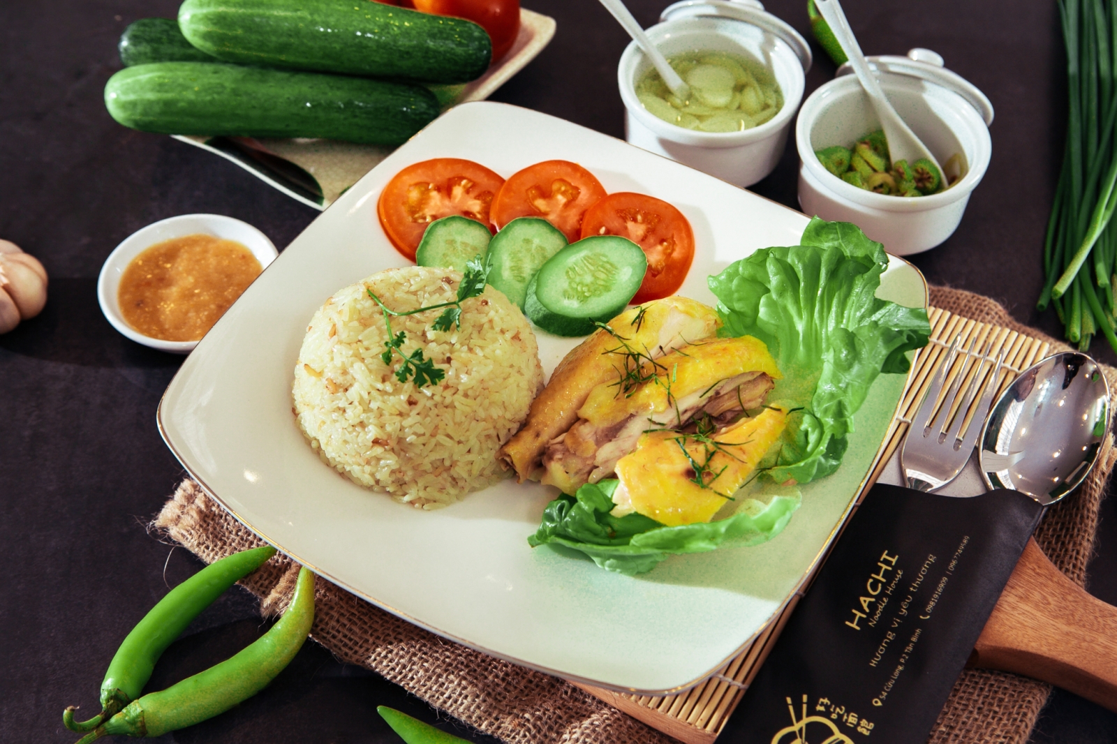 Theo truyền thống gia đình, Hachi chọn lọc kĩ lưỡng từng nguyên vật liệu để chế biến, phối hợp với việc chăm chút cho từng thành phần của từng bát mì, đĩa cơm. Những gắp Mì hòa quyện vào nước cốt lèo đậm đà, nhưng thanh tao.